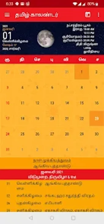 Appens funktioner inkluderar detaljerade Muhurat-timing för viktiga ceremonier, dagliga Panchang-prediktioner med information om Nakshatra och Tithi, samt Rahukaal-varningar för att hjälpa användare att planera sina aktiviteter. Med dagliga uppdateringar av soluppgång och solnedgång, ger Tamil Calendar 2023 ett praktiskt verktyg för att organisera och maximera användarnas tid och upplevelser.